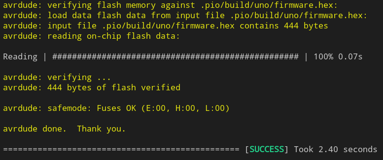 Flash the project with Ctrl+Alt+U - see the process result in the console