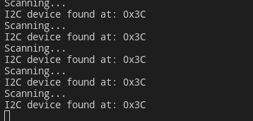 Let’s observe the console output and note the address where the display has been found on the bus: