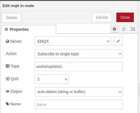 Normally, you would configure the input block to subscribe to a specific topic, while the out node would just emit anything that it gets sent.